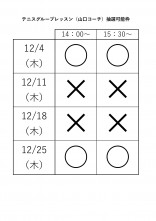テニスグループレッスン(木曜日)山口 久美子コーチのレッスン抽選について2025.12月分を 11/16(日)より申込受付開始いたします。