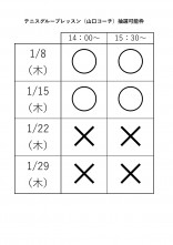 テニスグループレッスン(木曜日)山口 久美子コーチのレッスン抽選について2026.1月分を 12/16(火)より申込受付開始いたします。