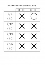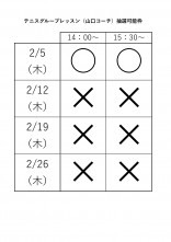 テニスグループレッスン(木曜日)山口 久美子コーチのレッスン抽選について2026.2月分を 1/16(金)より申込受付開始いたします。